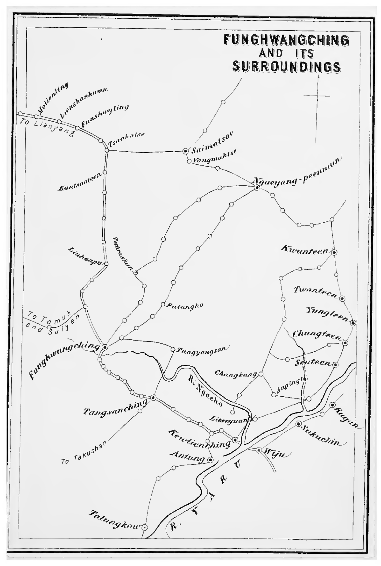 The right wing was to command the enemy’s earthworks from a high hill to the east of Hooshan and aid General Katsura’s front attack. The left wing was to go round the flank of Hooshan and by cutting off communication between Litseyuan and Kewlienching, also aid General Katsura. The right column was to take a circuitous road to Litseyuan, after storming which it was to join General Katsura. The left column was to intercept the enemy from Antung. General Kuroda’s Artillery was to cover the army on its advance upon Hooshan. These arrangements having been made, Major-General Oseko left Wiju at 4 a.m. on the 25th, and crossing the pontoon, took possession of the hill. Lieut.-General Katsura followed at 6 and advanced towards the enemy, who were astonished on seeing the Japanese on their side of the river, as they were ignorant of the construction of the bridge during the night; but they had been prepared for the attack and fired upon the Japanese. MajorGeneral Kuroda then poured his artillery-fire upon the enemy to cover Lieut.-General Katsura’s advancing army; but these Lutai troops fought stubbornly, being constantly reinforced from their camp behind Litseyuan. The battle raged furiously, the whole of the enemy’s earthworks being enveloped in smoke. Presently, a fusillade was suddenly opened from a position halfway up the hill to the east of Hooshan. It gradually approached the enemy. This was Major-General Oseko’s right wing, which now fired upon the enemy’s flank. Thus attacked from two sides, the Chinese could no longer hold out, and began to retreat at 7 a.m. On hearing how hard-pressed were the troops at Hooshan, over 3,000 horse and foot left Kewlienching to reinforce Hooshan. Major-General Tatsumi’s column, which had crossed the bridge at past seven, was advancing upon the left flank of Hooshan when it came upon these /reinforcements. The enemy fired upon the Japanese, who soon extended their line. After a severe fight, the enemy retreated to Litseyuan. Their position was, however, taken by storm; and as from that place, MajorGeneral Tatsumi joined in the attack on three sides, the enemy were routed. As their retreat to Kewlienching was intercepted by Major-General Tatsumi, they fled along a path to Funghwang. Major-General Tatsumi immediately pursued them and came to their encampment a mile and a half up the Ngaeho from Litseyuan. Here he captured 10 guns and over 400 tents ; and pitched his camp. On this day the Third Division was encamped near Litseyuan. The Staff Headquarters were stationed in Wiju ; but at past one, they crossed the river with the staff of the Fifth Division and removed to a hill near Hooshan, where plans were made for attacking Kewlienching. As Kewlienching was strongly fortified, it could not be stormed without a heavy loss. The Staff Headquarters, therefore, decided not to attack the castle in front. Lieut.-General Katsura was, therefore, to march with the Third Division from the Ngaeho higher up than Litseyuan, and taking the road to Tungtien-kow, attack the castle in rear. Lieut.-General Nozu was to lead the Fifth Division between the road from Litseyuan to Tungtien-kow, and the third stream, and attack the enemy’s left wing. The two Divisions were to commence their attack at 3 p.m. next day. During the night of the 25th, the enemy continually fired. On the morning, the Ninth Brigade approached Kewlienching and opened fire. There was no reply, and the whole castle was buried in silence. The Eleventh Regiment climbed up the walls and entered the castle. Not a Chinese was to be seen. The enemy, it was evident, had fled under cover of night. The Fifth Division sent its cavalry in pursuit, but without success. It was not the first time that the enemy had shown their skill in flight. At 10 a.m., General Yamagata entered Kewlienching. The old Custom-house was converted into the Staff Headquarters. Soon after, the Rising Sun was to be seen fluttering on the castle-top. The Japanese losses at Hooshan and Kewlienching were an officer and 32 sub-officers and men killed, and three officers and and 108 sub-officers and men wounded. The Chinese losses were very great. The Japanese army buried 495 Chinese dead, and many bodies were also seen floating down the Ngaeho. The booty consisted of 34 cannon with ammunition, several hundred rifles, over 400 tents, capable of holding 8,000 men, and large quantities of provisions. Meanwhile, Major Okuyama left Wiju on the afternoon of the 25th and arrived at 4 at Majonpo, which faces Antung across the river. His object was to attack Antung over the river so that no reinforcements could be sent thence to Kewlien-ching, when the general attack on the castle should take place on the following day. The Chinese, in reply, kept up during the night of the 25th a desultory fire; but when he resumed the attack on the 26th, there was no more response from Antung. He crossed the river, and found it had been deserted by the Chinese during the night. This town was subsequently made the headquarters of the Civil Administrative Office of the Chinese territory occupied by the First Army. Mr. Komura, late Chargé d'Affaires at Peking, was made Director of this office, but was later succeeded by Licut.-Colonel Fukushima. The garrison at Kewlienching had fled in two directions, one section making for Takushan, and the other for Funghwang-ching. The latter castle is one of some importance, being at the time garrisoned by some 7,000 men under Liu Shenghew, a younger brother of Liu Mingchuen. It is about 37 miles from Kewlienching. It was intended to make a general attack on this castle on the 3rd November, the birthday of the Emperor of Japan. But when Major-General Tatsumi’s Column had on the 29th advanced 25 miles from Kewlienching to Tangshan, on the Funghwang road, it was reported to him that evening that the Chinese had already set fire to the castle and deserted it. The column entered the castle on the following day. About 200
