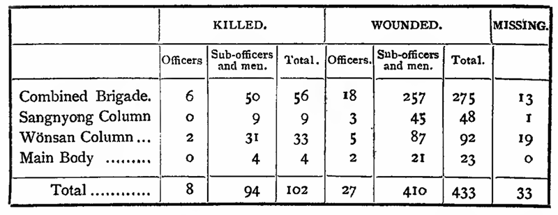 It may be here mentioned that on the 15th September, the Military Headquarters were removed from Tokyo to Hiroshima to be nearer the seat of war, the Emperor himself presiding over their councils as the Commander-in-chief of all the Japanese forces.