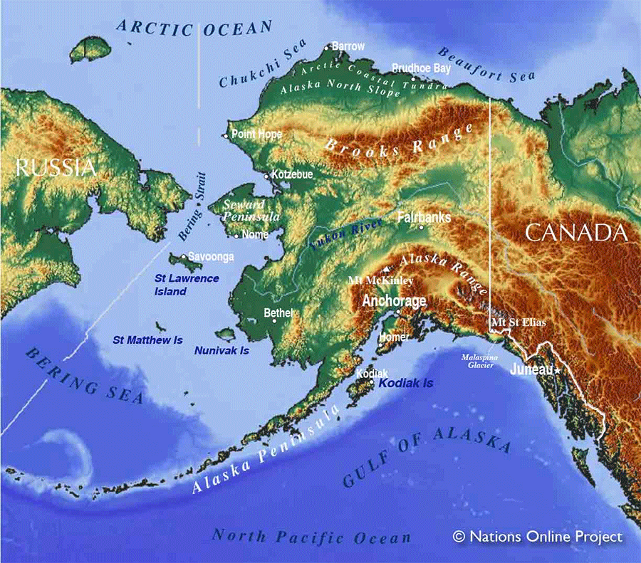 Alaska is the northern end of the long cordillera which begins at Cape Horn,