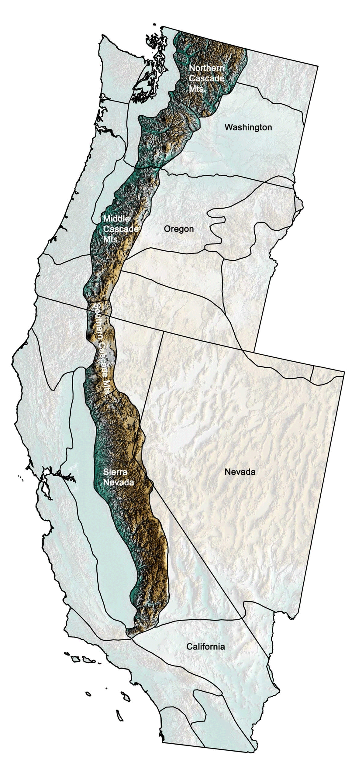 extends through the two Americas, and is here joined by the Nevada-Cascade