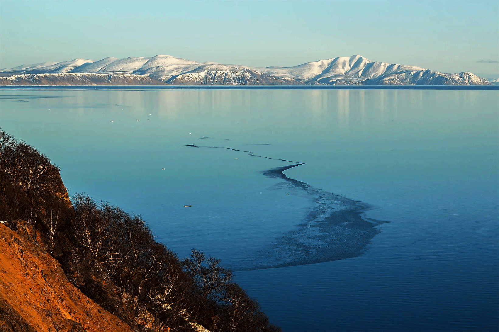 way round the southern point of the peninsula, touch at Nishekamchatsk, and