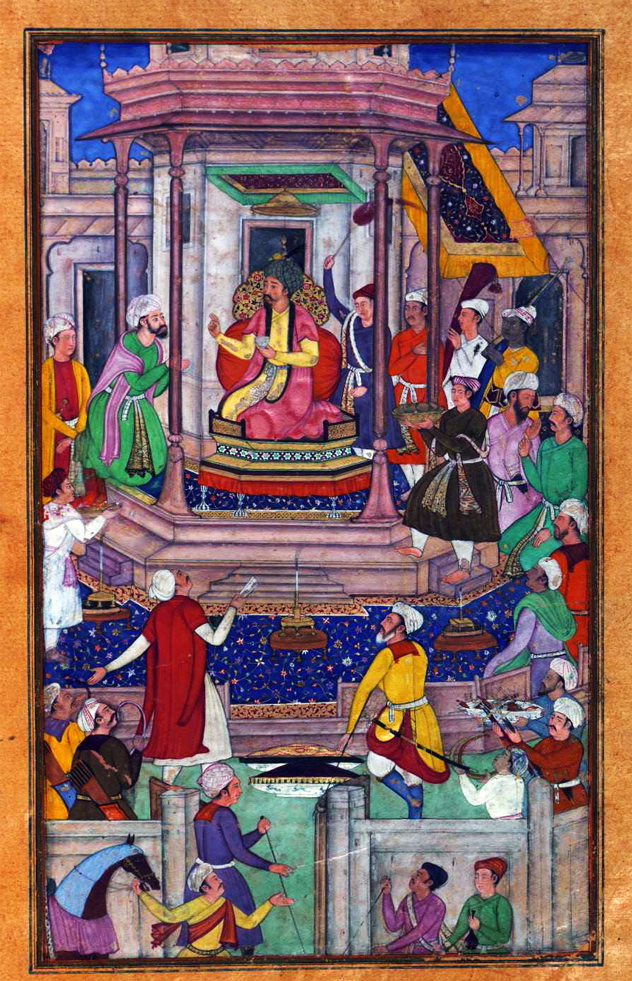 the standards were acclaimed in Moghul fashion [miniature, left]. The Khan