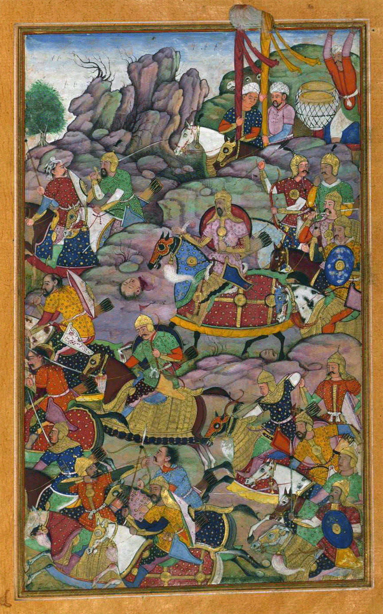 the standards [detail of miniature, right]. Horns and drums were sounded