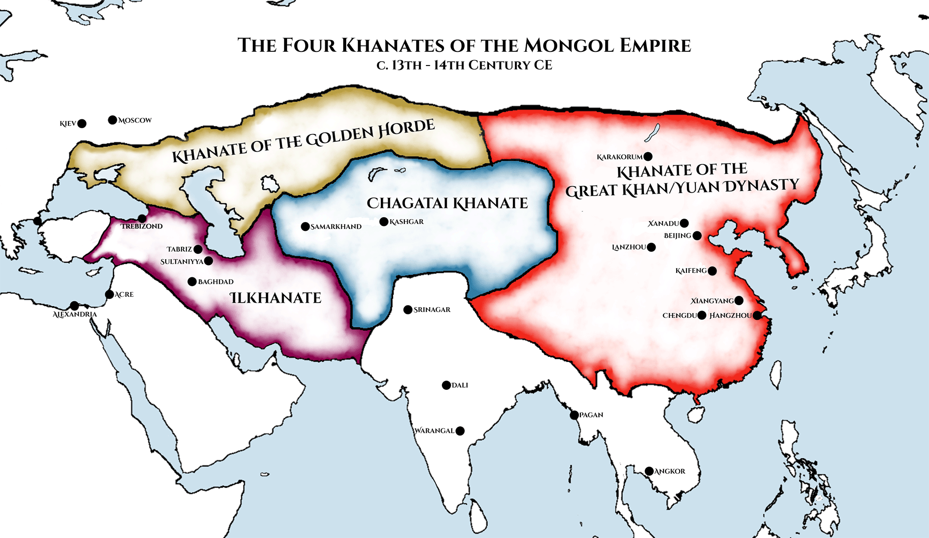 Khan and Kublai Khan, whose reigns coincide with the apogee of Mongol power and