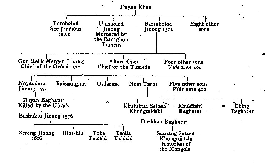 Mongol country proper, and did not extend over the Kalmuks. When Dayan Khan’s