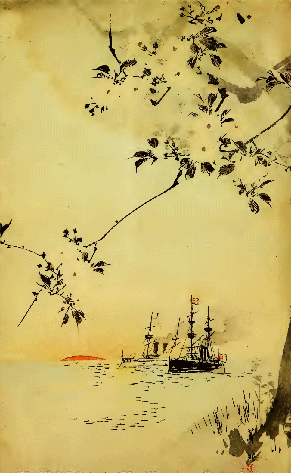 The Chinese men-of-war lay before IJukung Island, while a gun-boat and a torpedo-boat kept guard. Their positions could just be seen. The torpedo-boat No. 22 was detected as she came close to the men-of-war, but she managed in the confusion caused by her presence to discharge two torpedoes. She was so severely attacked, however, that she made immediately for land; but she ran aground. One of her crew was killed, while several others were drowned. After a canvas-boat which had carried part of the crew ashore, had overturned and there was no other help, the rest in the torpedo-boat, including Lieut. Fukushima and five others remained in the hold while the boat was exposed to the enemy’s fire. They were rescued in the evening. The torpedo-boat No. 9, of the second flotilla, on taking her course to the north-west, came quite close to the Ting-yuen. She got among the Chinese torpedo-boats, which failed to recognise her until a light was thrown upon her from the men-of-war. She discharged a torpedo at 200 metres and another at about 50 metres, and as the latter took effect, she retreated at full speed; but the Chinese poured a heavy fusillade upon her, by which four men were killed and all her men in the engine-room were wounded. She could move no longer; but fortunately she met the torpedo-boat No. 19, which took over her crew, though the boat was abandoned. Nos 8 and 14 had stranded. The Ting-yueu had been hit and that day boats could be seen plying between Liukung and the man-of-war whose hull had foundered in shallow water. It was decided to make a second torpedo attack that night, though the Chinese were now on the alert. 6th. The first flotilla went into the harbour at 4 a.m. Three Chinese vessels were hit with torpedoes; and though the flotilla was fired at from the machine-guns, it returned absolutely undamaged. When day broke, the Lai-yuen, Wei-yuen, and a transport were seen to be half-sunk. The Japanese squadrons anchored at Yinshankow to prepare for the following day’s general attack. 7th. The main and the first flying squadrons commenced an attack on Liukung Island at 7.20 and the second, third (the Yamato, Musashi, Tenryu, Kaimon, and Katsuragi) and fourth (the Tsukushi, Atago, Maya, Oshima, and Chokai) flying squadrons also attacked Jih Island at the same time. After a severe engagement, one of the disappearing guns on Jih Island was disabled, and the magazine caught fire and exploded, so that the fort could no longer be seriously defended. Ten Chinese torpedo-boats, and two steam-launches came out of the harbour and were pursued by the first flying squadron. Eight of them ran aground as well as the launches, but the remaining two entered Chefoo, which, however, they left immediately after and also ran aground, They were brought by the Yoshino to Yinshankow. Most of the crews of these boats, on deserting them, were captured by the army. In the engagment of the morning, the Matsushima had three officers wounded, the Yoshino, two marines killed and four wounded, the Akitsushima, two wounded, the Fuso, one killed and six wounded, and the Tsukushi, three killed and five wounded. 8th. It was decided by the first flying squadron to destroy the boom at the entrance to Wei-hai-wei. Accordingly,. at 11 p.m., a tender and a boat were sent from each of the four men-of-war composing that squadron. The boom consisted of three steel hawsers, three inches diameter, to Which logs, five inches square and 12 feet long, were tied at regular intervals and kept in place by anchors. At first, the Chinese fired at the men when they heard the noise made by sundering the hawsers; but they desisted afterwards as they could not see the men. 9th. At 1 a.m., the men succeeded in cutting away 400 metres of the boom; and returned to the squadron at 2 a.m. It was decided to resume the work on the following night. The third flying squadron attacked the east fort of Liukung, while the first and second kept watch on the Chinese men-of-war. Two shells from the captured fort at Lukeutsuy struck the Ching-yuen, which sank thereupon. In the night, another portion of the boom was destroyed. 10th. The Itsukuskima kept watch all night, and was joined by the rest of the main squadron in the morning, while all the other vessels went to take in coal. 11th. The third flying squadron again attacked the fort on the south-east extremity of Liukung. On the Katsuragi, a gunner was killed and six others were wounded, while on the Tenryu, a lieutenant was killed, and an engineer and four marines were wounded. The Naniwa and Akitsushima then attacked the west fort to facilitate the destruction by a flotilla of the boom at the east entrance ; but the wind was too strong for the flotilla. 12th. A small gun-boat (the Chen-pi) flying a white flag came out of the harbour; and nine men were escorted in a boat to the Matsushima. The principal of them was Ching Peihkwang, Commander of the Kwang-ping. He told the officers who met him in the flagship that Admiral Ting being sick, he had been deputed to come in his stead and handed a letter from that Admiral, offering to surrender all the Chinese men-of-war at Wei-hai-wei, the Island of Liukung, and all the forts and stores there, if all the officers, men, and civilians on the island were allowed to leave it unmolested. The Admiral also proposed that the Commander of the British China squadron should guarantee the faithful performance of the conditions on his part. Admiral Ito, after consultation with his staff, accepted the offer of surrender and declined the guarantee as unnecessary, as he put perfect confidence in Admiral Ting’s military honour. He also invited the Admiral to reside until the conclusion of the war in Japan where he promised him every consideration and protection. Admiral Ito also sent him a present. Commander Ching returned to Liukung Island in the evening. 13th. At 8.25 a.m., Commander Ching came again, this time in the Chen-chung, with the Chinese flag at half-mast