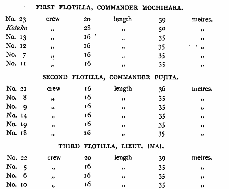 The Chinese had been utterly defeated at Phyongyang on the 15th September and finally driven out of Corea by the battle of Kewlienching on the 24th October; and the Japanese army next invaded Chinese territory. As the First Army Corps drove them from castle to castle in Manchuria, it was necessary to strike a decisive blow by the capture of the great Chinese fortress and naval station of Port Arthur. Such a victory would place the whole of Pechili Gulf in Japanese hands. And to this end, the Second Army Corps was organised and despatched to the Regent’s Sword. This Second Army was to be composed of the First Provincial Division and the Twelfth Brigade, wjkich belongs to the Sixth Provincial Division. The First Division, whose headquarters are at Tokyo, reached Hiroshima on the 27th September, Marshal Oyama having been appointed its Commander-in-chief on the preceding day. On the 15 th October, the transports were ready to take the army over to the Regent’s Sword. The Japanese Diet held at the time an extraordinary session at which a war budget of 150,000,000 yen was unanimously voted. The Sixth Brigade under Major-General Hasegawa had already left for Corea, whence it was afterwards re-transported to China. The army was constituted in the following manner:—