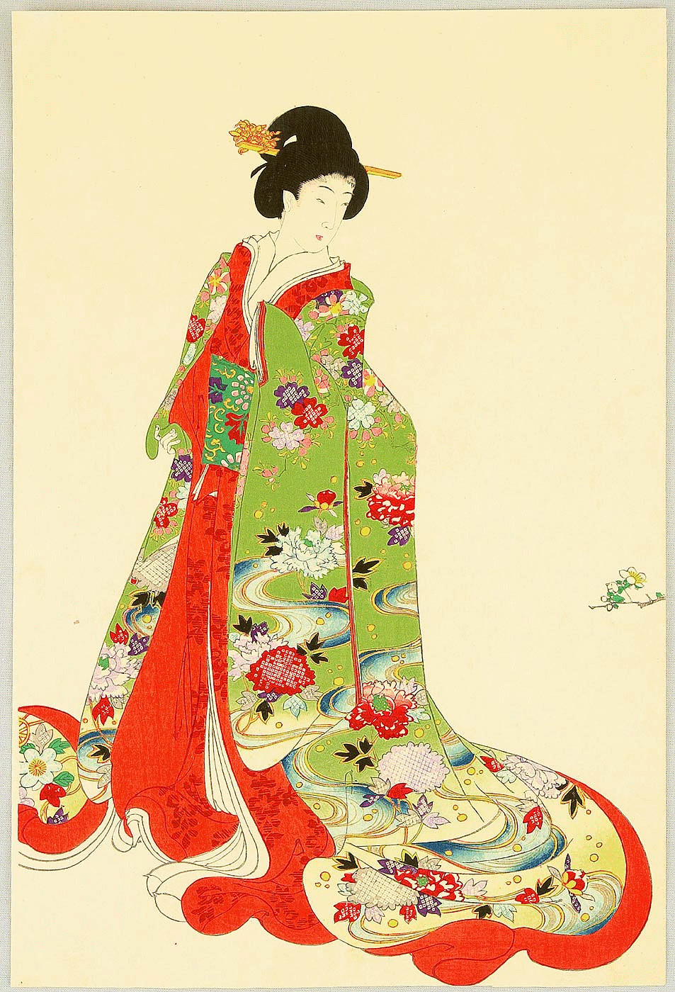In the court at Kioto, besides games of skill or chance in the house, were foot -ball, cock-fighting, falconry, horsemanship, and archery. The robust games of the military classes were hunting the boar, deer, bear, and smaller game. Hunting by falcons, which had been introduced by some Corean embassadors in the time of Jingu Kogo, was almost as extensively practiced as in Europe, almost every feudal lord having his perch of falcons. Fishing by cormorants, though a useful branch of the fisherman's industry, was also indulged in for pleasure. The severe exercise of bunting for sport, however, never became as absorbing and popular in Japan as in Europe, being confined more to the professional huntsman, and the seeker for daily food. The court ladies shaved off their eyebrows, and painted two sable bars or spots on the forehead resembling false eyebrows. In addition to the gentle tasks of needle-work and embroidery, they passed the time in games of chess, checkers, painted shells, and a diversion peculiar to the palace, in which the skill of the player depended on her sensitiveness in appreciating perfumes, the necessary articles being vials of fragrant extracts. Their pets were the peculiar little dogs called chin. They stained their teeth black, like the women of the lower classes; an example which the nobles of the sterner sex followed, as they grew more and more effeminate. One of the staple diversions of both sexes at the court was to write poetry, and recite it to each other. The emperor frequently honored a lady or noble by giving the chosen one a subject upon which to compose a poem. A happy thought, skillfully wrought stanza, a felicitous grace of pantomime, often made the poetess a maid of honor, a concubine, or even an empress, and the poet a minister or councilor. Another favorite means of amusement was to write and read or tell stories —the Scheherezade of these being a beautiful ladv, who often composed her own stories. The following instance is abbreviated from the Onna Dai Gaku ("Woman's Great Study") : Isé no Taiyu was a daughter of Sukeichika, the mikado's minister of festivals, and a highly accomplished lady. None among the ladies of the court could equal her. One day a branch of luxuriant cherry-blossoms was brought from Nara. The emperor gave it to her, and asked her to extemporize a verse. She did so, and the courtiers were all astonished at the beauty and delicate sentiment of the verse. Here is another : Murasaki Shikibu was the daughter of the lord of Echizen. One day a lady of Kamo asked if there was any new entertaining literature or novels, as the empress-dowager wished to read something new. The lady invited Murasaki to write some stories. She, knowing that the great Chinese scholar Shomei completed his collection of the essays of ancient writers by building a high house and secluding himself in it, had a high tower erected at Ishiyama overlooking Lake Biwa, and affording a glorious view of the mountains, especially in the moonlight. There she retired, and one night when the full moon shone upon the waters she was so inspired that she wrote in one night two chapters of the Genji Monogatari a book containing fifty-four chapters in all, which she finished in a few weeks. She presented it to the empress-dowager, who gave it to the mikado. To this day it is a classic. Sei Shonagon was the daughter of Kiyowara no Motosuké. She was one of the imperial concubines. She was well read in Japanese and Chinese literature, and composed poetry almost from infancy, having a wonderful facility of improvisation. One day, after a fall of snow, she looked out from the southern door of the palace. The emperor, having passed round the wine-cup to his lords and ladies at the usual morning assembly of the courtiers and maids of honor, said, "How is the snow of Kuroho?" No one else understood the meaning, but Sei Shonagon instantly stepped forward and drew up the curtains, revealing the mountains decked in fresh-fallen snow. The emperor was delighted, and bestowed upon her a prize. Sei Shonagon had understood his allusion to the line in an ancient poem which ran thus: "The snow of Kuroho is seen by raising the curtains." Once when a certain kuge was traveling in a province, he came, on a moonlight night, to a poor village in which the cottages had fallen into picturesque decay, the roofs of which gleamed like silver. The sight of the glorified huts inspired the noble with such a fine frenzy that he sat up all night gazing rapturously on the scene, anon composing stanzas. He was so delighted that he planned to remain in the place several days. The next morning, however, the villagers, hearing of the presence of so illustrious a guest among them, began busily to repair the ruin, and to rethatch the roofs. The kugé, seeing all his poetic visions dispelled by this vandal industry, ordered his bullock-car, and was off, disgusted. During the first centuries of writing in Japan, the spoken and the written language were identical. With the study of the Chinese literature, and the composition of works by the native literati almost exclusively in that language, grew up differences between the colloquial and literary idiom and terminology. The infusion of a large number of Chinese words into the common speech steadily increased; while the learned affected a pedantic style of conversation, so interlarded with Chinese words, names, and expressions, that to the vulgar their discourse was almost unintelligible. Buddhism also made Chinese the vehicle of its teachings, and the people everywhere became familiar, not only with its technical terms, but with its stock phrases and forms of thought. To this day the Buddhist, or sham-religious, way of talking is almost a complete tongue in itself, and a good dictionary always gives the Buddhistic meaning of a word separately. In reading or hearing Japanese, the English-speaking resident continually stumbles on his own religious cant and orthodox expressio