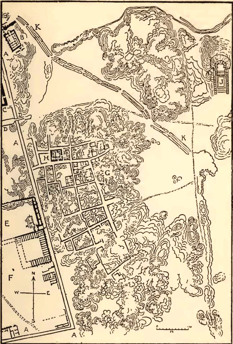 others cross them at right angles. It would appear that, in spite of the absence of open spaces, we here have a deliberate attempt at town-planning on a scientific basis, the original idea