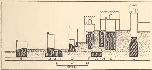 Nebuchadnezzar's fortification in the bed of the river to the west of the Southern Citadel. The old line of the