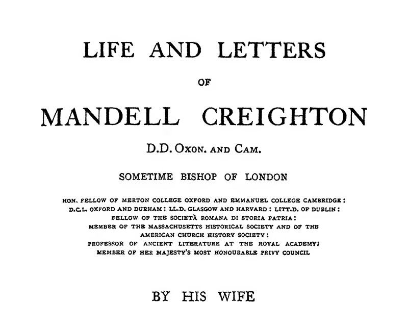 Mandell Creighton was born at Carlisle on July 5, 1843. His grandfather, James Creighton, had come from the Scottish Lowlands to Carlisle as a young joiner. There he became a partner in his employer's business, which he developed and ultimately made his own. He is described as a silent man with a sound judgment, upright and honourable, and much respected; and it is recorded that his funeral was more largely attended than any other before that time in Carlisle. His son Robert still further extended his father’s business. He moved to larger premises in Castle Street, opposite the Cathedral, where he had a furnishing and decorating esta- blishment, described as of high reputation throughout the North of England. Robert Creighton was a man of much natural shrewdness and business capacity, and ofan active and enterprising mind. He went largely into the timber trade, and was also much occupied with municipal business, taking a prominent part in the affairs of the city. He was long a member of the Council of the Corporation, and held the office of Mayor in 1 866. Robert Creighton married in 1842 Sarah Mandell, the tenth child of Thomas Mandell, a yeoman farmer living on a farm called Carlisle Gate near Bolton in Cumberland Among the Mandells there were several, both of Sarah’s generation and of her father’s, who went to Cambridge, and distinguished themselves. An uncle of Sarah’s was Fellow and Tutor of Queens’ College, Cambridge, and a very able man. One of her brothers was ninth Wrangler and Fellow of St John’s. Sarah was living with one of her brothers at Wetheral. near Carlisle, when she came to know Robert Creighton, Brother and sister were devotedly attached, and he must have been a man of jealously strong affections, for it was assumed that he would never consent to his sister’s marriage. The young couple accordingly took what was no uncommon step in those days, and eloped to Gretna Green. They were afterwards married by special licence at Carlisle in St Mary’s Church, then the nave of the Cathedral. Sarah was not forgiven by her brother, who never spoke to her again. She is described as a tall woman, with a fine figure, good-looking and kind-hearted, but very quick with her tongue. She seems to have been capable of inspiring great devotion. To her children she could be but the dimmest of memories, for she died in 1850, but she left her husband broken-hearted, and he never married again. Four children, two sons and two daughters, of whom one died in infancy, were bom to her. Mandell was the eldest, and seems to have been the most like his mother in appearance. No good portrait of her exists, but he was so unlike his father and brother and sister as not to seem to belong to the same family. He had little recollection of his mother. His father was very reserved, and never spoke ofher to his children; his daughter can only remember his once mentioning her. A sister of Robert Creighton’s came to take care of the desolate home. Her nephews and niece were much attached to her, and she was devoted to them; but Aunt Jane must have found her position one of anxious responsibility, for when I came to know her in later years, she was fond of saying that she could never recommend any one to undertake to bring up their brother’s children. It was over the shop in Castle Street that Mandell’s childhood was passed. The windows of the living rooms looked on the Cathedral, and maimed fragment though it is, no doubt it exercised its influence on the boy’s mind and laid the foundation for that strong love of architecture and antiquity which characterised him in after life. To live in the border city was an education in itself. There is a strong local feeling in Carlisle, and Cumbrians always stand closely by one another. Carlisle has been a city of steady rather than of rapid growth. Its citizens have not, as a rule, been men who made large fortunes, or indulged in luxurious ways of living. The city has a somewhat grim aspect, befitting a border town. The object of its inhabitants is clearly work not pleasure, and the pleasure most easily accessible to those who seek for change is escape to the purple hills whose outline can be seen on the horizon. Mandell Creighton grew up in a simple hardworking atmosphere, where strong Liberal principles prevailed. The work that came to hand had to be done as a matter ofcourse. There was not much outward show of affection in the home life. The father was very undemonstrative, and drew out no signs of affection from his children. He made them feel that he expected them to do their duty, and impressed them with the idea that he had a quiet ingrained contempt for those without force of character or capacity: those who, to use a favourite expression of his, had not ‘their head screwed on the right way.’ There is no record of his having had any special tastes or amusements ofhis own, except that he played whist and taught his children to play, treating their mistakes with remorseless severity. There were few books and pictures in the house, nothing to stimulate a love for literature or art. There was no spoiling or indulgence in the family. The younger son as a very small boy when overheard grumbling against one of his masters was at once silenced by his father’s remark : ‘If I hear any more such grumbling, I shall write a note for you to take to him to ask him to cane you.’ But if his children were compelled to respect authority, there was no undue interference with their liberty, and provided they did what was demanded of them, they were allowed to follow their own tastes and inclinations. He believed that a boy must be allowed to follow his own bent, so long as he worked, and worked hard. A nephew of Mrs. Creighton’s, William Mandell Gunson, was a frequent visitor at the house. He was a distinguished member of the University of Cambridge, who graduated with high honours in the Classical and Mathematical Triposes in 1847, and was shortly 