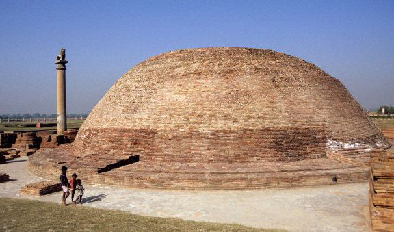 The pillars or lats, as they are commonly called, are of singularly massive proportions, consisting of a round and slightly tapering monolithic shaft with bell-shaped capital surmounted by an abacus and crowning sculpture in the round, the whole rising to an average height, from base to summit, of between 40 and 50 feet. One of the best preserved, though not the best in style, is that at Lauriya Nandangarh. The crowning figure on this pillar is a lion, and the relief which adorns the abacus a row of geese, symbolical, perhaps, of the flock of the Buddha's disciples. In other cases, the single lion is replaced by a group of lions set back to back with or without some sacred symbol between them, or by an elephant or bull, while the abacus is adorned with a lotus and honeysuckle design or with wheels and animals alternating. Shafts of a precisely similar pattern, but smaller proportions, were employed in the great hall at Patna, but there the capitals and entablature appear to have been of wood. The dignified, massive simplicity of these pillars is common to all the other architectural remains of the Maurya epoch. The rail at Sarnath and the throne at Buddh Gaya are devoid of ornament, but each is cut entire and with exquisite precision from a single block of stone, and the plainness of the umbrellas is only relieved by delicately defined ribs radiating on their under side. Equally chaste and severe are the dwellings and chapels excavated for the Ajivika ascetics in the hills of Bihar. Like the chaityas or hermitages from which they were copied, these consist of a small oblong chamber (in one instance with rounded ends) with or without a circular apartment at one extremity, but in only one example is the timber work of their prototypes reproduced in the stone. The example referred to is the Lomas Rishi Cave, the ornamental facade of which is an accurate replica of a wooden model. This particular cave, however, bears no inscriptions either of Ashoka or of Dasharatha, and the fact that its interior was left in an unfinished state suggests that it was the latest of the whole group. Probably, it was not excavated until after the close of Dasharatha's reign. Hardly less striking than the skill with which these monuments were chiselled and the brilliancy to which they were polished, is the disparity evinced in the style of their sculptured ornamentation. This disparity is well exemplified by comparing the primitive treatment of the statue from Parkham in the Mathura Museum with the highly developed modelling of the Sarnath capital. The former represents a stage of art not yet emancipated from the binding law of 'frontality' or from the trammels imposed by the mental prepossessions of the artist. The head and torso are so posed that, were they bisected vertically, the two halves would be found to be all but symmetrical; while the flattened sides and back of the figure, connected only by a slight chamfering of the edges, are conclusive proof that the sculptor failed to grasp more than one aspect of his subject at a time, or to co-ordinate its parts harmoniously together as an organic whole. These features are not mere superficial details of technique, due to the caprice of the artist. They are the fundamental characteristics of the nascent sculpture of all countries, and the primitiveness of the art which they signify is borne out in this particular statue by other traits, namely, by the subordination of the side and back to the front aspect, by the inorganic attachment of the ears, by the uncouth proportions of the neck, by the schematic rotundity of the abdomen, and the absence of modelling in the feet. Persian Influence The Sarnath capital, on the other hand, though by no means a masterpiece, is the product of the most developed art of which the world was cognisant in the third century BC the handiwork of one who had generations of artistic effort and experience behind him. In the masterful strength of the crowning lions, with their swelling veins and tense muscular development, and in the spirited realism of the reliefs below, there is no trace whatever of the limitations of primitive art. So far as naturalism was his aim, the sculptor has modelled his figures direct from nature, and has delineated their forms with bold, faithful touch; but he has done more than this: he has consciously and of set purpose infused a tectonic conventional spirit into the four lions, so as to bring them into harmony with the architectural character of the monument, and in the case of the horse on the abacus he has availed himself of a type well known and approved in western art.