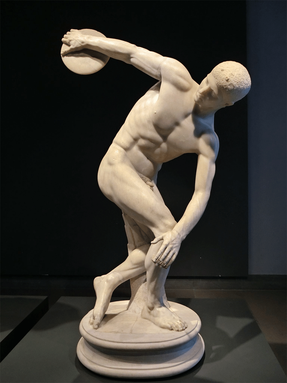 the kouros may be illustrated by the so-called Strangford Apollo in the British Museum. Body, legs and head remain frontal,