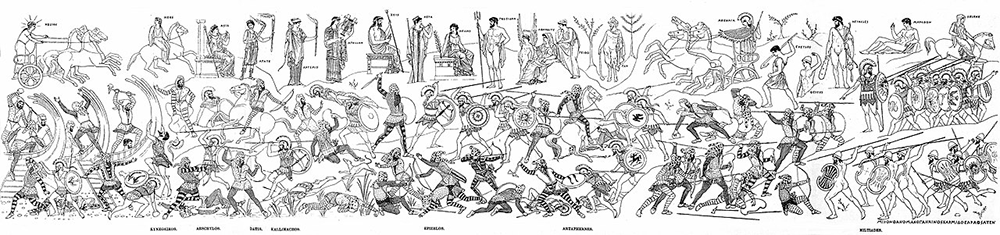 The theme of the pediments is one upon which Pindar loved to dwell in his Aeginetan odes: how the sons of Aeacus had twice taken Troy: once with Heracles, and again with the Atreidae. Pindar composed a hymn to Aphaia,