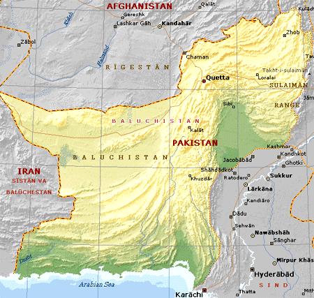 extending inland from the northern shore of the Sea of Oman. Immediately to the