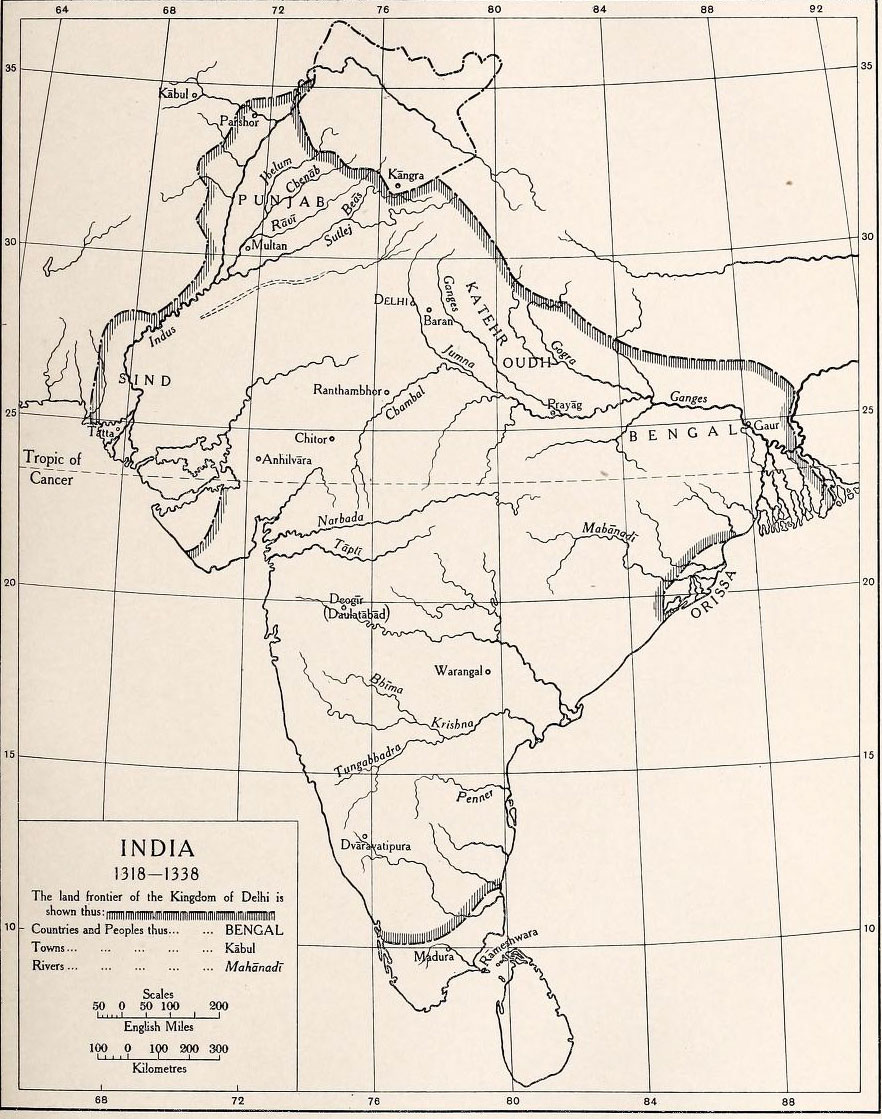 spent the rainy season of 1350, and here he received news of the death of Malik Kabir at Delhi, which deeply grieved him. Khvaja Jahan and Malik Maqbul were sent to Delhi to carry on the administration of