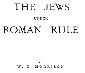 THE JEWS UNDER THE ROMAN RULEW.D. MORRISON |