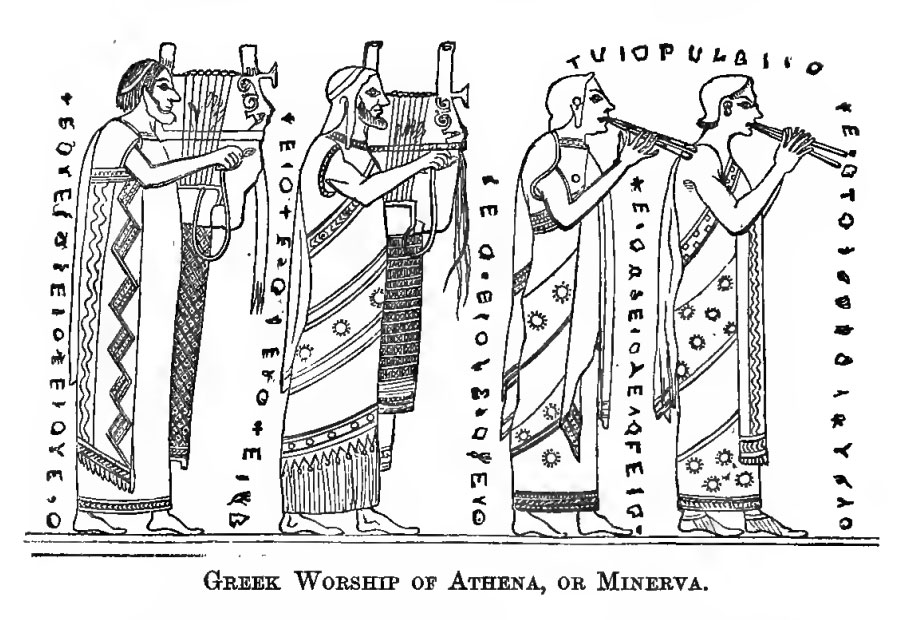 Greek writers. The worship of Athena, or Minerva, who corresponds to the