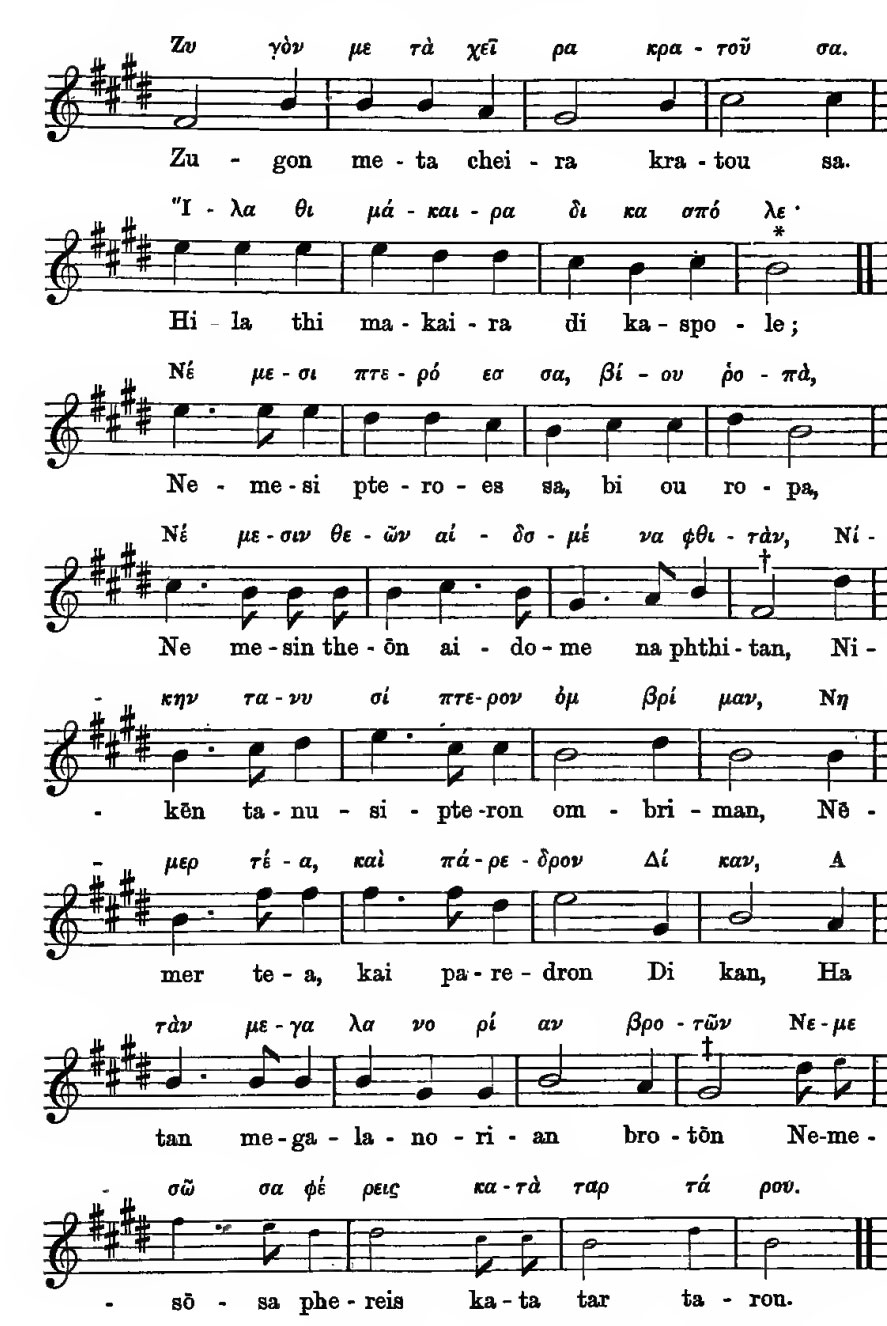 The music to the second part of the Hymn to Nemesis