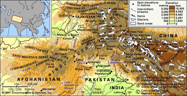 Kabul-Kandahar road several passes penetrate the mountainous belt of the Indian
